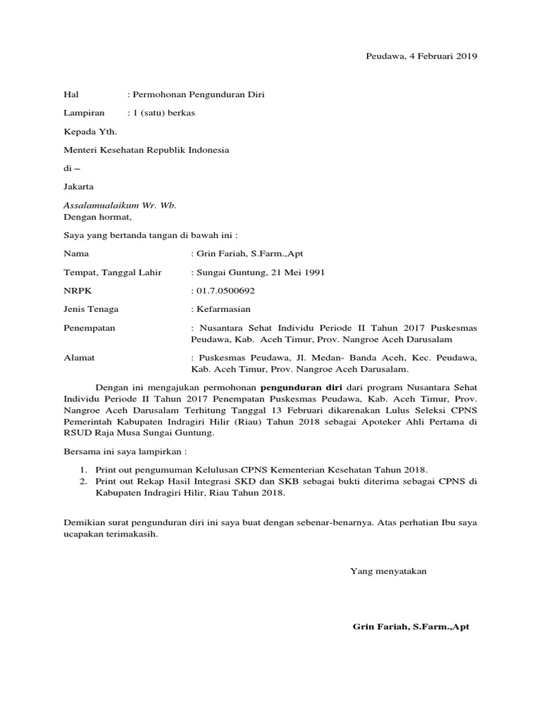 Walaupun ada yang memiliki usaha namun jumlahnya tidak sebanding dengan para pekerja yang berpenghasilan dari gaji. Untuk alasan ingin berkembang di perusahaan lain. Medan 25 januari 1990 id karyawan : Dalam tayangan video berdurasi 24 detik itu tampak seorang perawat berpakaian alat pelindung diri (apd) menangani. Surat pernyataan pengunduran diri dari cpns contoh surat ini merupakan surat pernyataan apabila mengundurkan diri dari cpns setelah di terima.